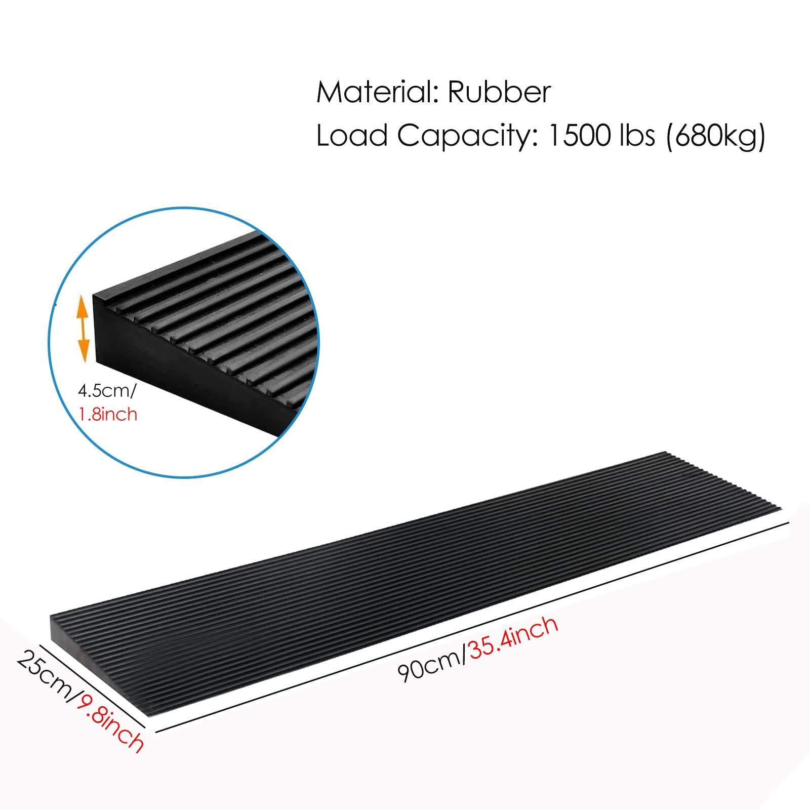 المواصفات الفنية لتحقيق أقصى درجات الثبات: تم تصميم كل وحدة بدقة هندسية عالية لـ ٩٠٠ × ٢٥٠ × ٤٥ مم ويزن ٨٫٧ كجم . وتوفّر الكتلة الكبيرة قبضة طبيعية ممتازة واستقرارًا ملحوظًا، ما يضمن بقاء المنحدر في مكانه بشكل آمن أثناء الاستخدام دون الحاجة الفورية إلى تثبيته بشكل دائم، بينما يوفّر ارتفاعه البالغ ٤٥ مم (١٫٨ بوصة) جسرًا مثاليًا لارتفاع الأبواب القياسي.