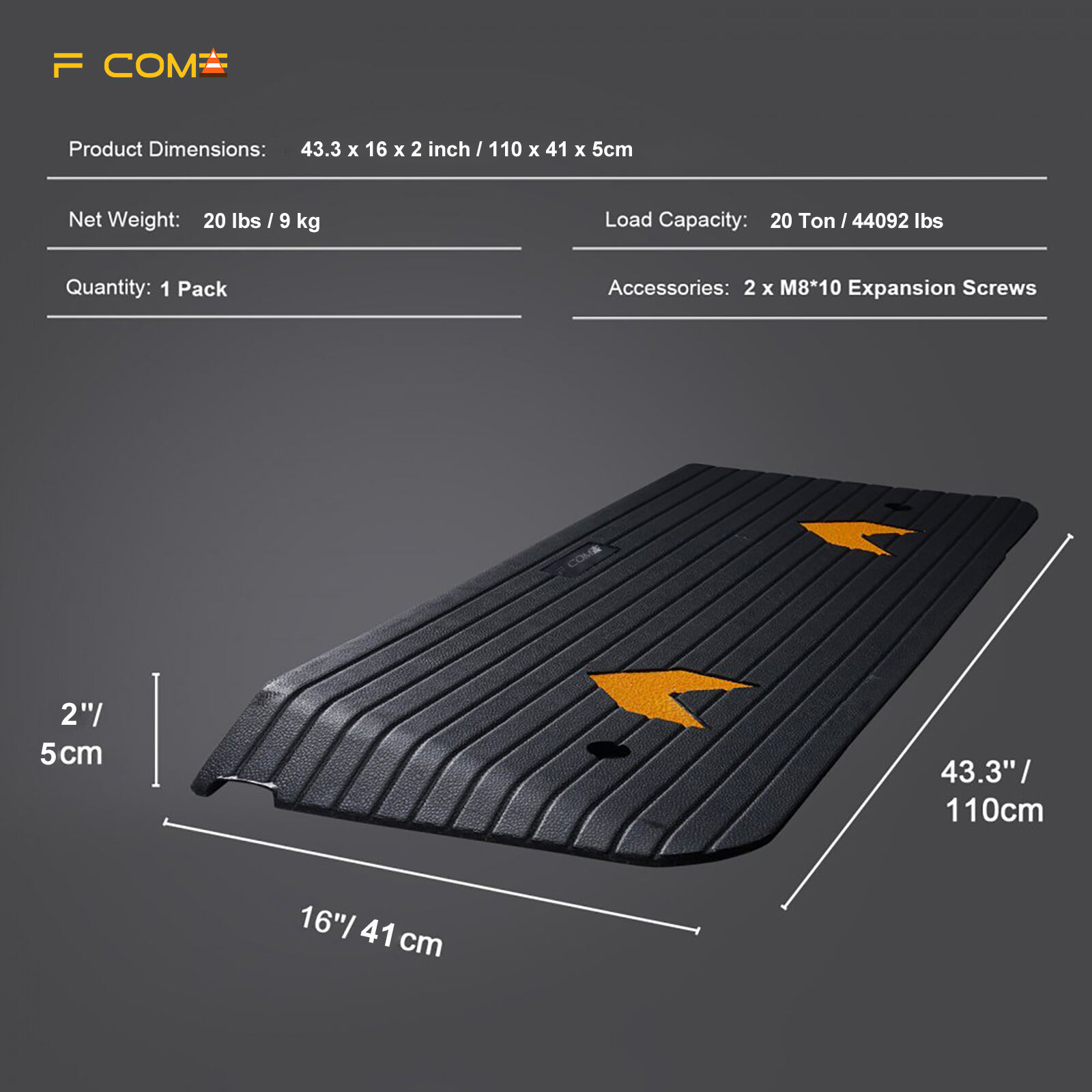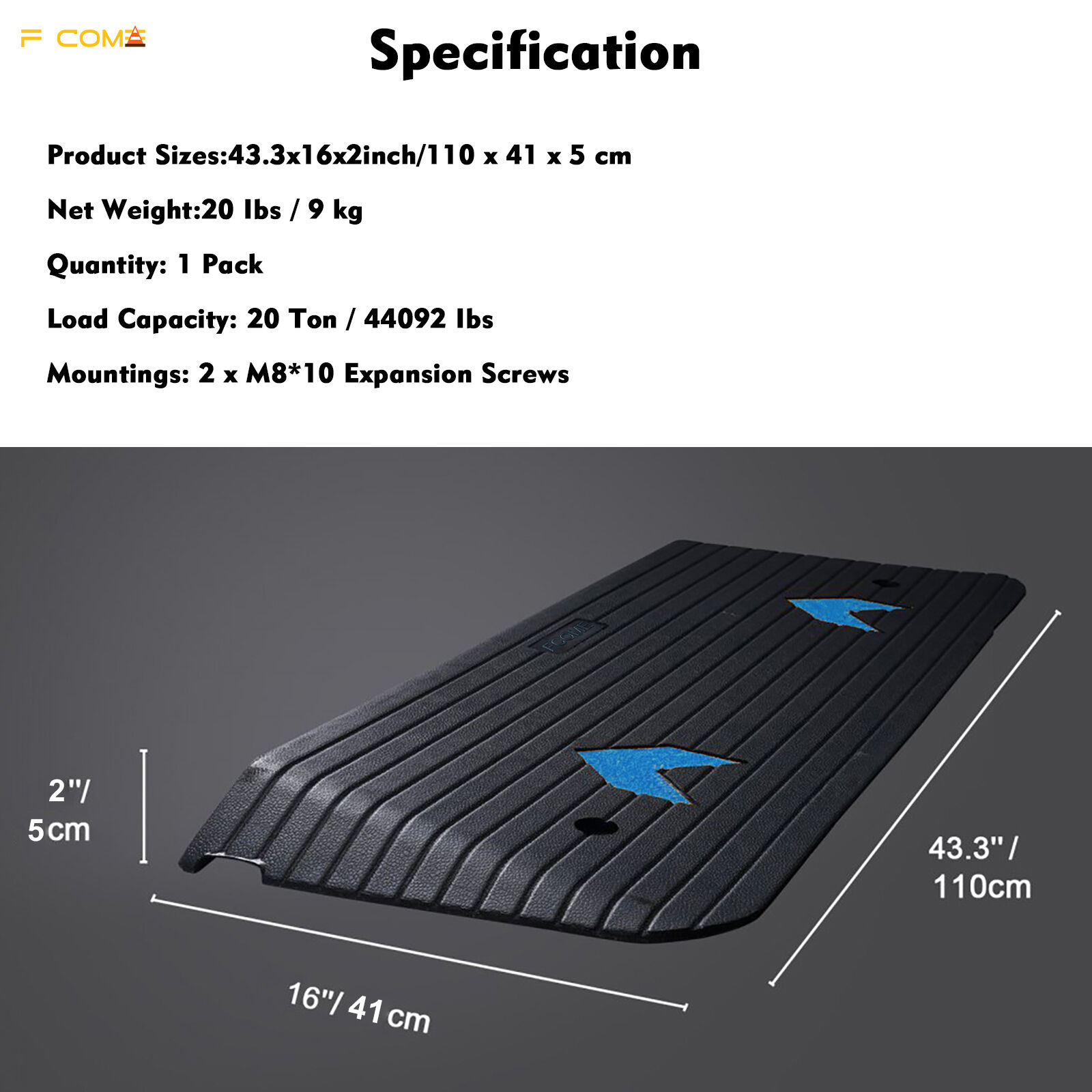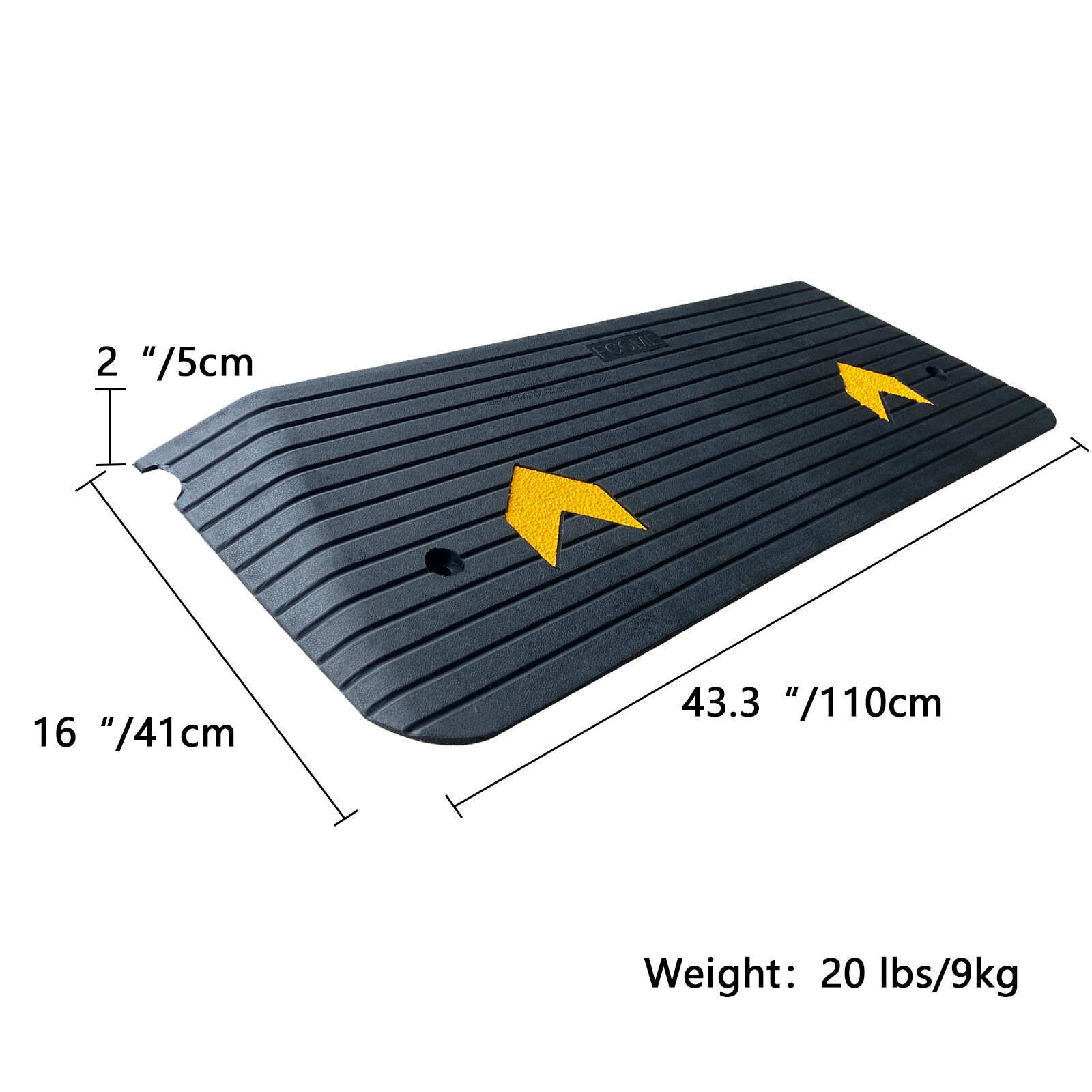 مواصفات دقيقة لتحقيق أقصى درجة من الاستقرار: يتم تصنيع كل وحدة وفق أبعاد دقيقة تبلغ ١١٠٠ مم × ٤١٠ مم × ٥٠ مم مع وزن قوي يبلغ 9 كجم . ويضمن التصميم المتين، المدمج مع سطح مقاوم للانزلاق مُزوَّد بتخريمات عرضية ومثاقب جاهزة للتثبيت، تركيبًا آمنًا ومستقرًا على مختلف أنواع أسطح الطرق، مما يمنع أي حركة تحت الضغط.
