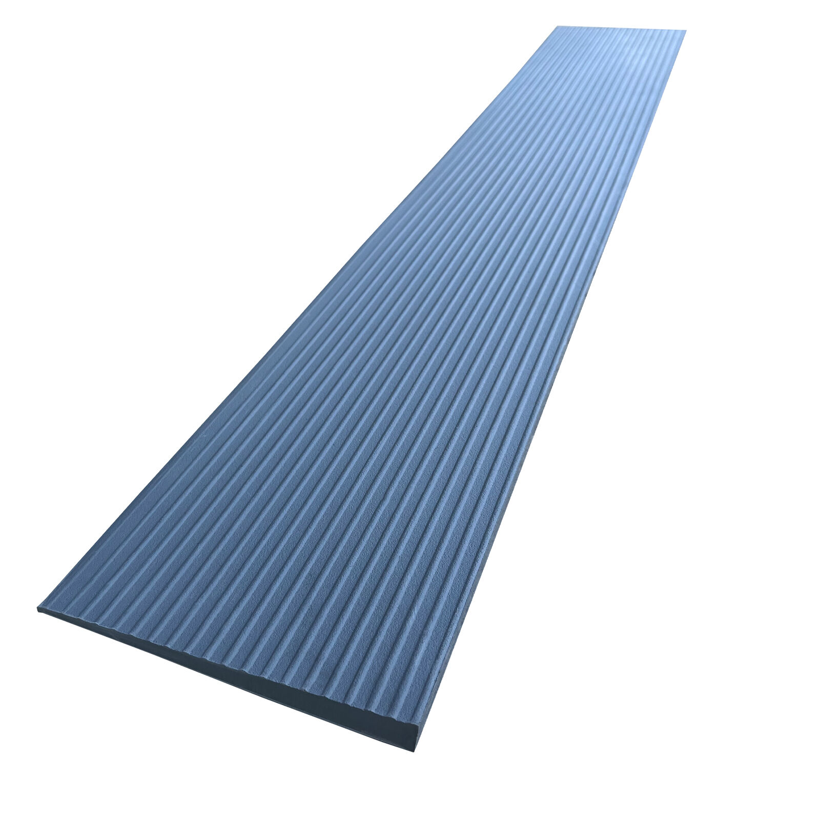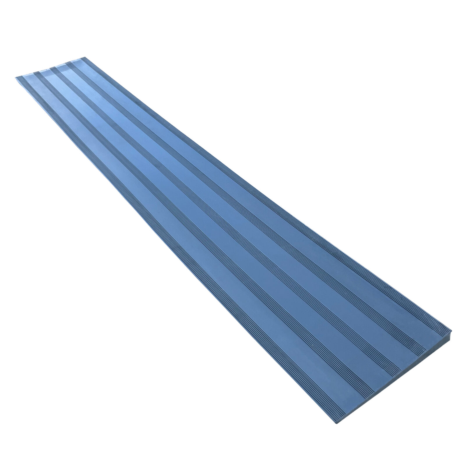 أبعاد مُحسَّنة لانتقالات سلسة: تم تصميم كل وحدة بدقة هندسية بأبعاد تبلغ ٩٠٠ مم (الطول) × ١٥٠ مم (العرض) × ٢٠ مم (الارتفاع) ويزن 1.9 كجم . ويوفّر ارتفاع الحافة البالغ ٢٠ مم منحدرًا تدريجيًّا مثاليًّا (حافة مائلة)، ما يسمح بانتقال سلس عبر الفجوات الصغيرة في الارتفاع، مع ضمان ثبات الشريط في مكانه دون انزلاق.