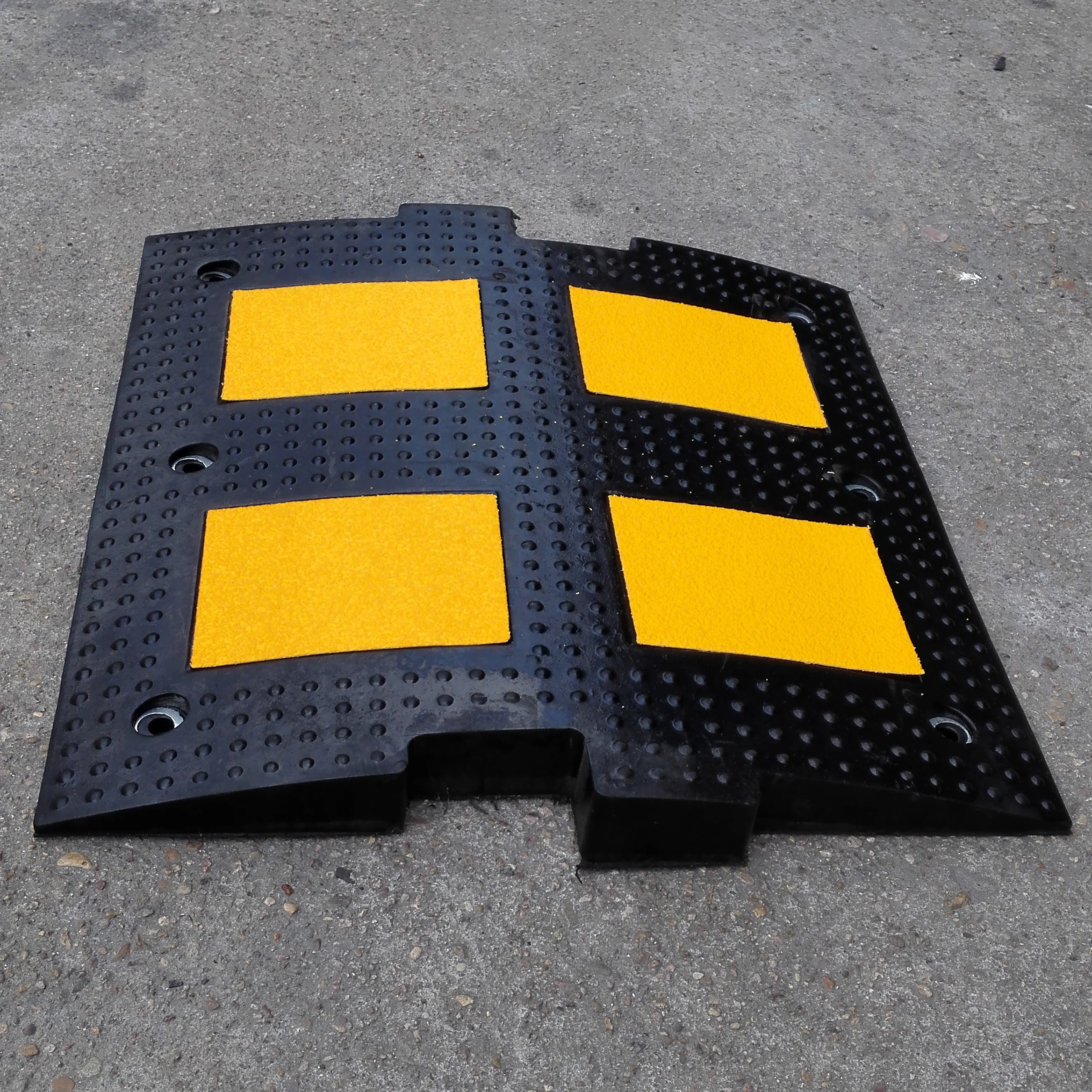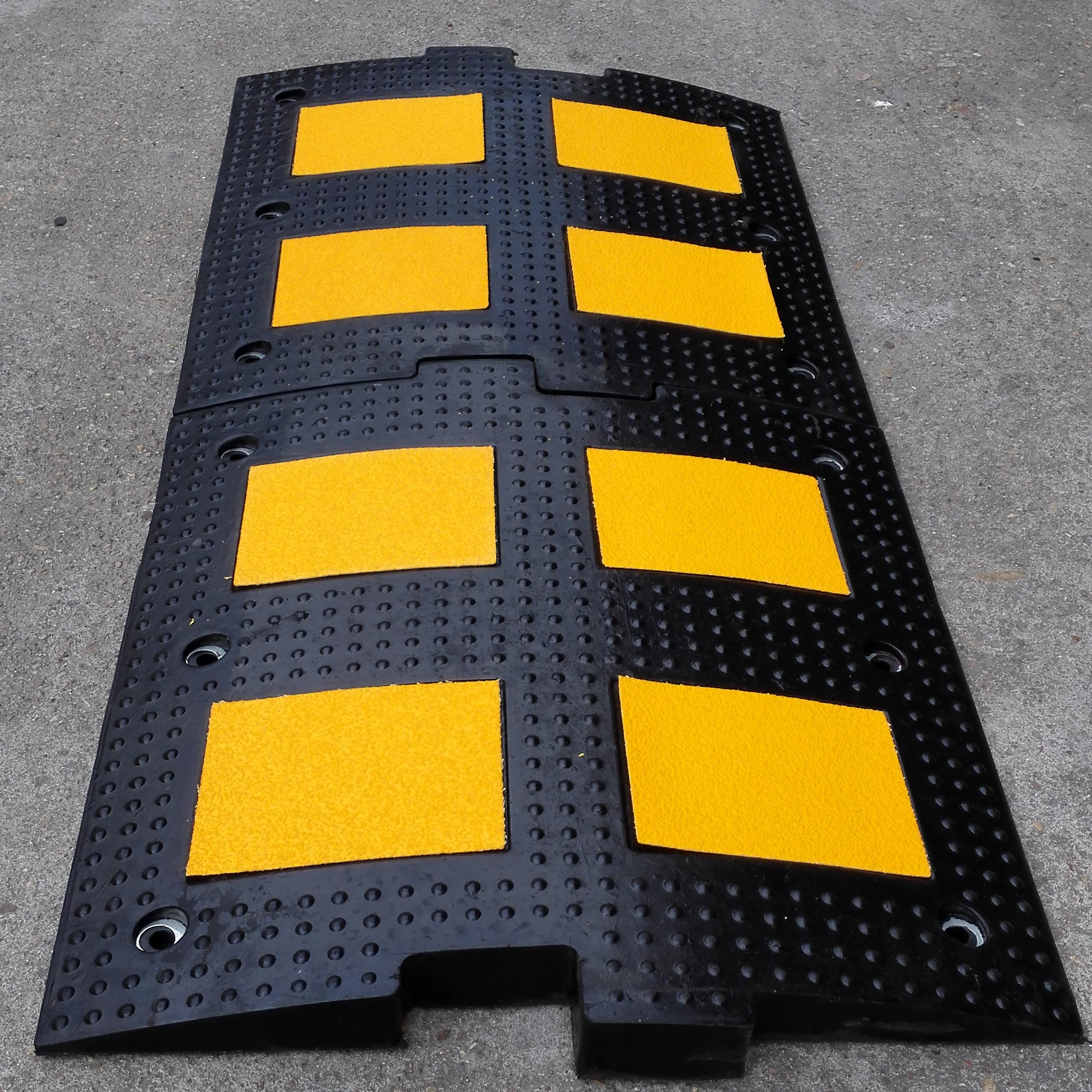 المادة مصنوعة من مطاط صلب معاد تدويره بنسبة 100٪، وتحمل وزنًا يصل إلى 15000 كجم الاستخدام تُستخدم هذه المطبات العالية المتانة على نطاق واسع للمركبات الآلية مثل السيارات والشاحنات والسيارات الرياضية متعددة الاستخدامات (SUV) والكراسي المتحركة، وتُركب بشكل شائع في مواقف السيارات والكراجات والمستودعات والفنادق ومراكز التسوق والمدارس والمستشفيات والمجتمعات المحلية ومواقع البناء وغيرها. وتحتوي الطبقة العاكسة الصفراء من كريات الزجاج على فيلم يذكّر السائقين بالسلامة ليلاً. التغليف: يُعبأ عادةً في أكياس منسوجة. لا تخشى منتجات المطاط من السقوط أو التلف، وهي جيدة بما يكفي أثناء النقل. كما يمكنك طلب تغليف كرتوني مع شعار مخصص على سطح الكرتون. المميزات: مصنوع من مطاط صناعي عالي الجودة. متين، قوي ولا ينزلق. يُطيل بشكل كبير عمر المنتج الافتراضي. تصميم قناة في القاع لحماية الكابلات وتصريف المياه. تركيبة ألوان السلامة عالية الوضوح - شرائط سوداء وصفراء زاهية تلفت الانتباه إلى الحد من السرعة في الليل أو البيئات ذات الإضاءة المنخفضة. تم تصميم السطح المضاد للانزلاق ليتحمل الضغوط الناتجة عن المناطق العامة ذات الحركة المرورية العالية. مجهز بأربع مسامير مسمارية، سهلة التركيب وتثبيت الحدبات السريعة على الطرق الرملية، والإسفلتية، والخرسانية، إلخ. تُستخدم هذه الحدبات السريعة الثقيلة على نطاق واسع في المستشفيات، المؤتمرات، مواقف السيارات، المستودعات، المصانع، ورش العمل، الحفلات الموسيقية، الفنادق، المسارح، المراكز التجارية، الفعاليات الرياضية، المدارس، المجتمعات المحلية، الجراجات، مواقع البناء، إلخ، وتحمي الأسلاك الممتدة، والأنابيب، وخطوط الكهرباء، والخرطوم، وكابلات الشبكة للاستخدام الداخلي والخارجي. لا يتطلب التجميع