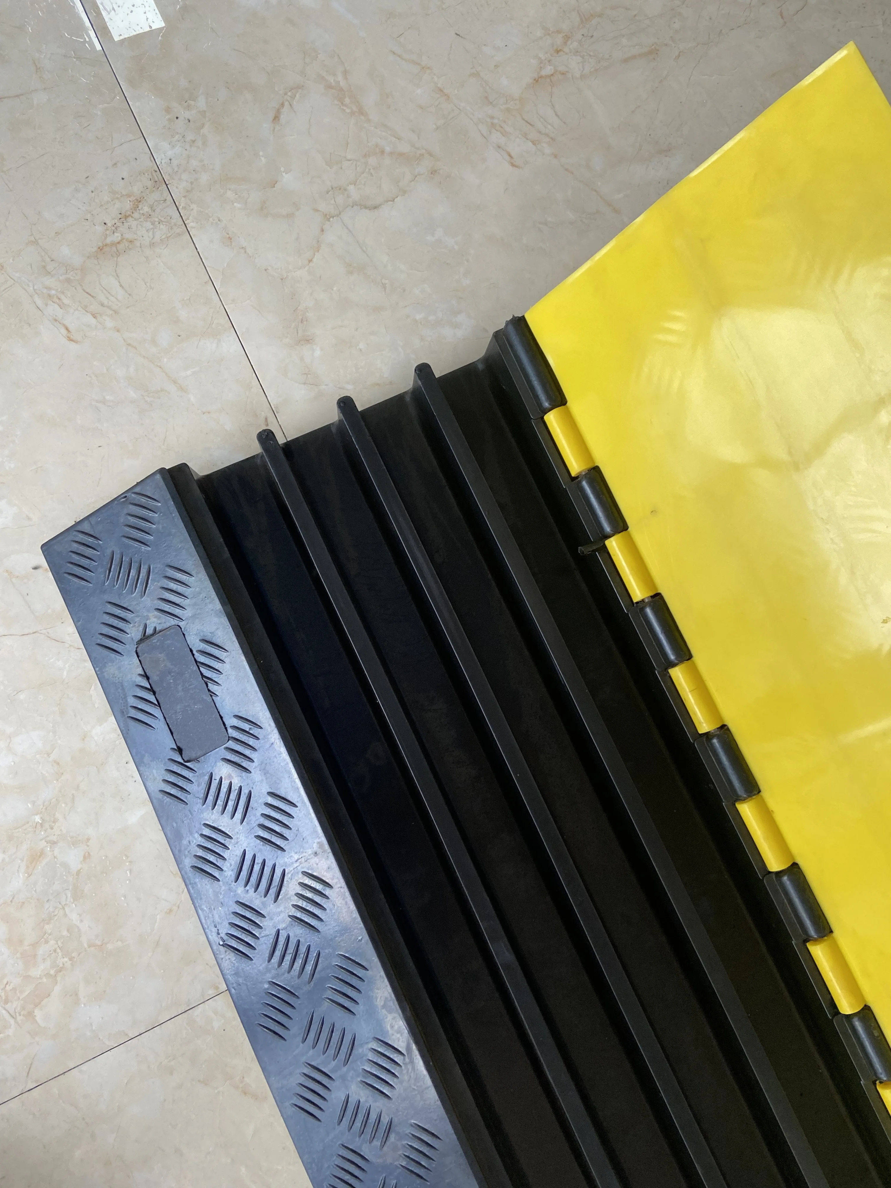 المميزات: 1. غطاء آمن من مادة PVC. 2. التعبئة: كيس منسوج / بالته. 3. قناة واحدة، أو اثنتان، أو ثلاث، أو أربع، أو خمس قنوات. 4. يحمي المشاة من خطر التعثر والسقوط والإصابات. 5. سهولة وضع وإزالة الكابلات/خطوط الخراطيم بنمط القمة المفتوحة. 6. الحل المثالي للفعاليات قصيرة الأجل مثل المعارض، والمهرجانات التجارية، والمؤتمرات. التفاصيل: مصنوع من مطاط معاد تدويره بنسبة 100% (بما في ذلك 10% مطاط خام). يُعد محتوى المطاط مفتاح الجودة. هذه هي المادة الأساسية التي استخدمها، وهي فعالة في التقليل من الاهتزازات وتتميز بالمتانة والكفاءة من حيث التكلفة.