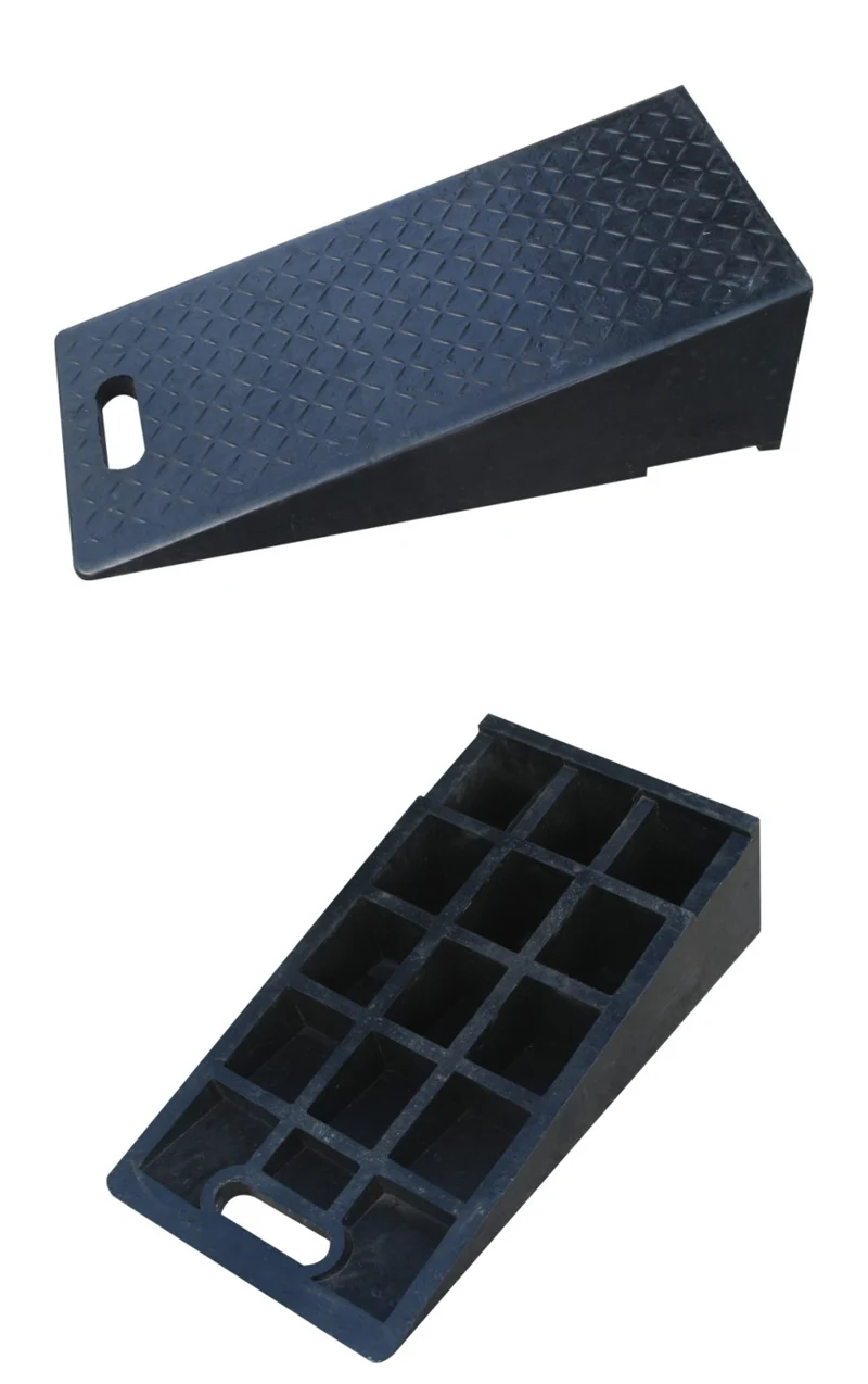 المميزات: 1. حاجز مطاطي صلب متين من قطعة واحدة المنحدر لا ينزلق في الظروف الداخلية أو الخارجية. 2. سطح مطاطي مخرّش مقاوم للانزلاق مع قنوات تصريف مصبوبة لتوفير تماسك إضافي. 3. أطراف مائلة توفر انتقالًا سلسًا من أي جانب. 4. يناسب معظم الحواجز ويمكن تعديله بسهولة عند الحاجة. 5. لا يتطلب تجميعًا