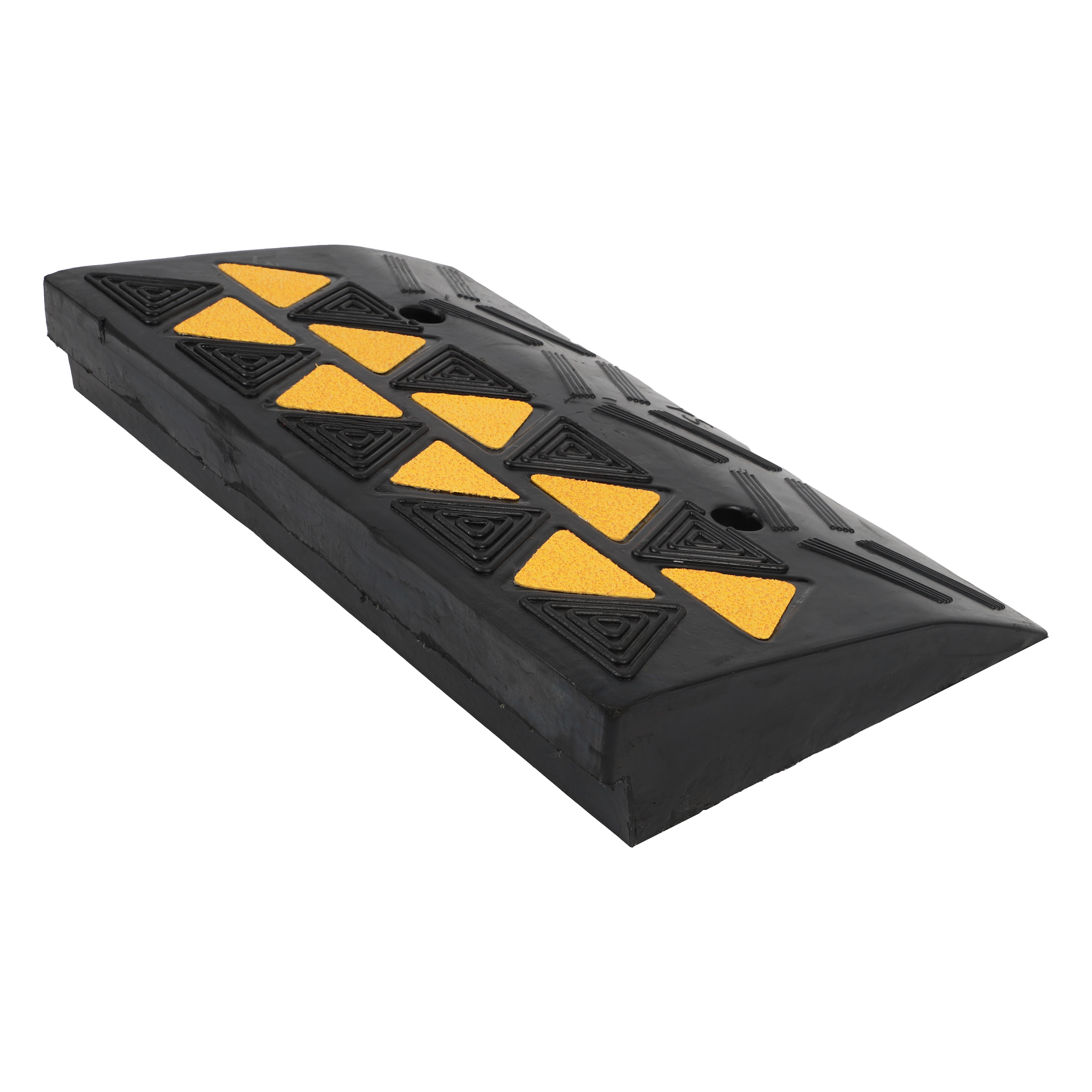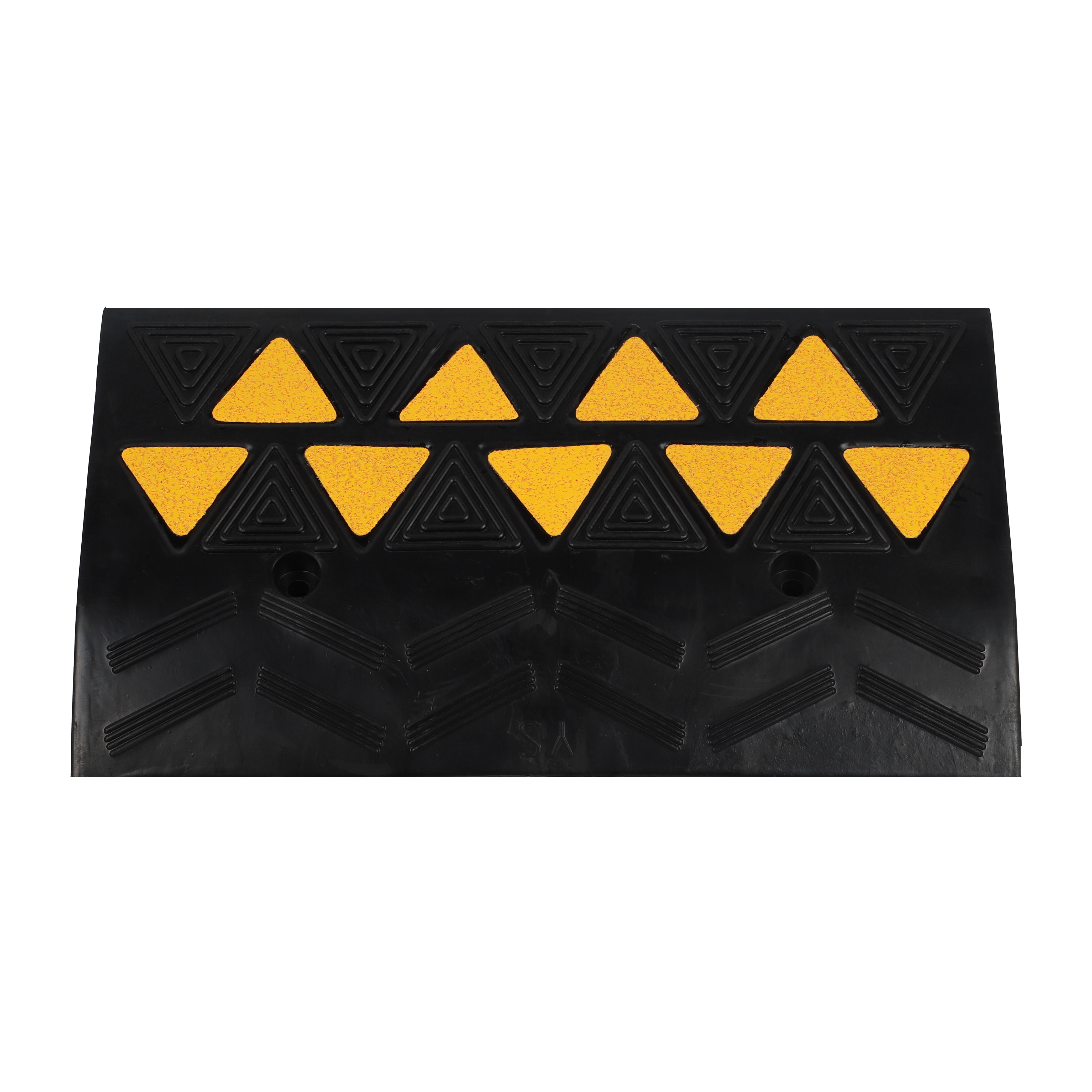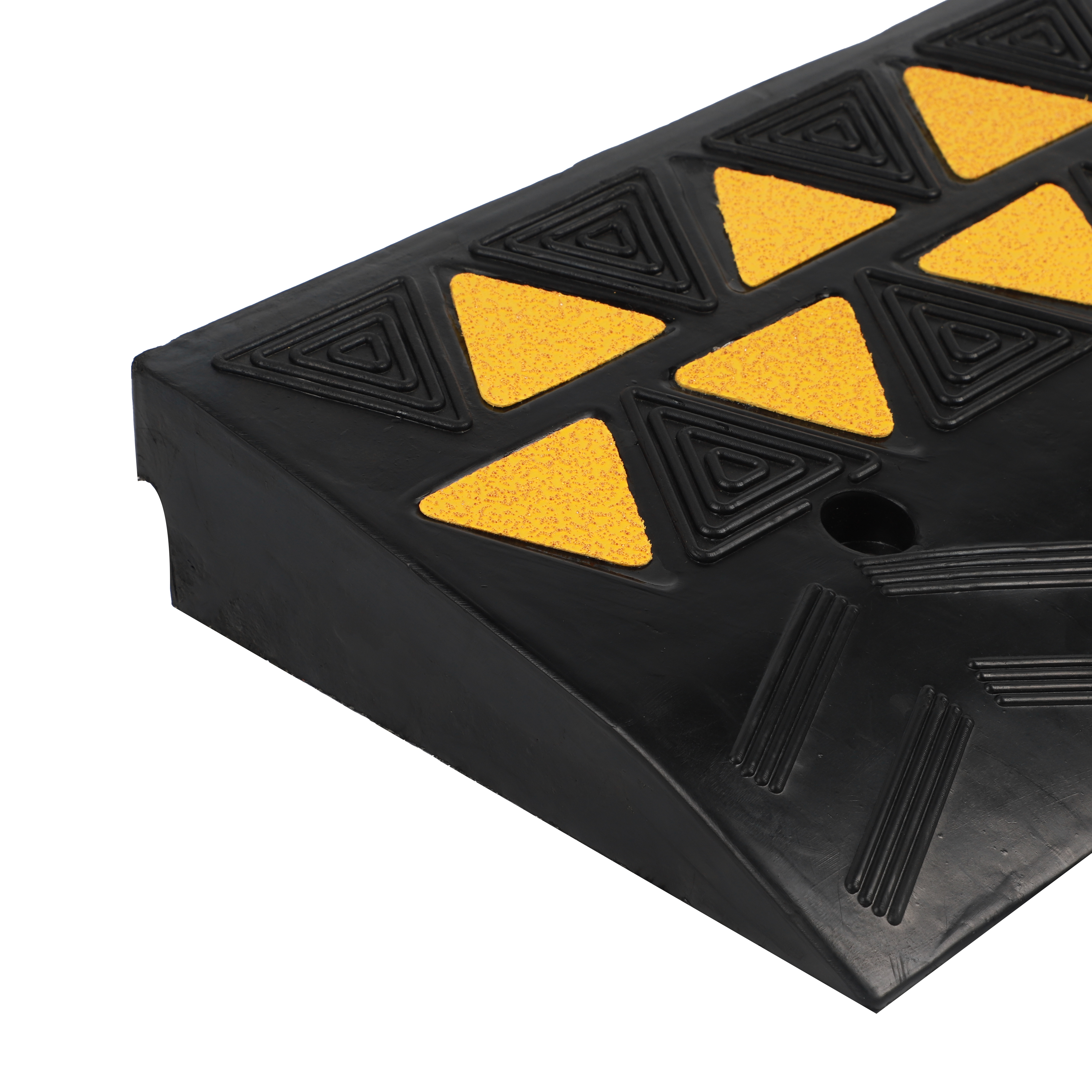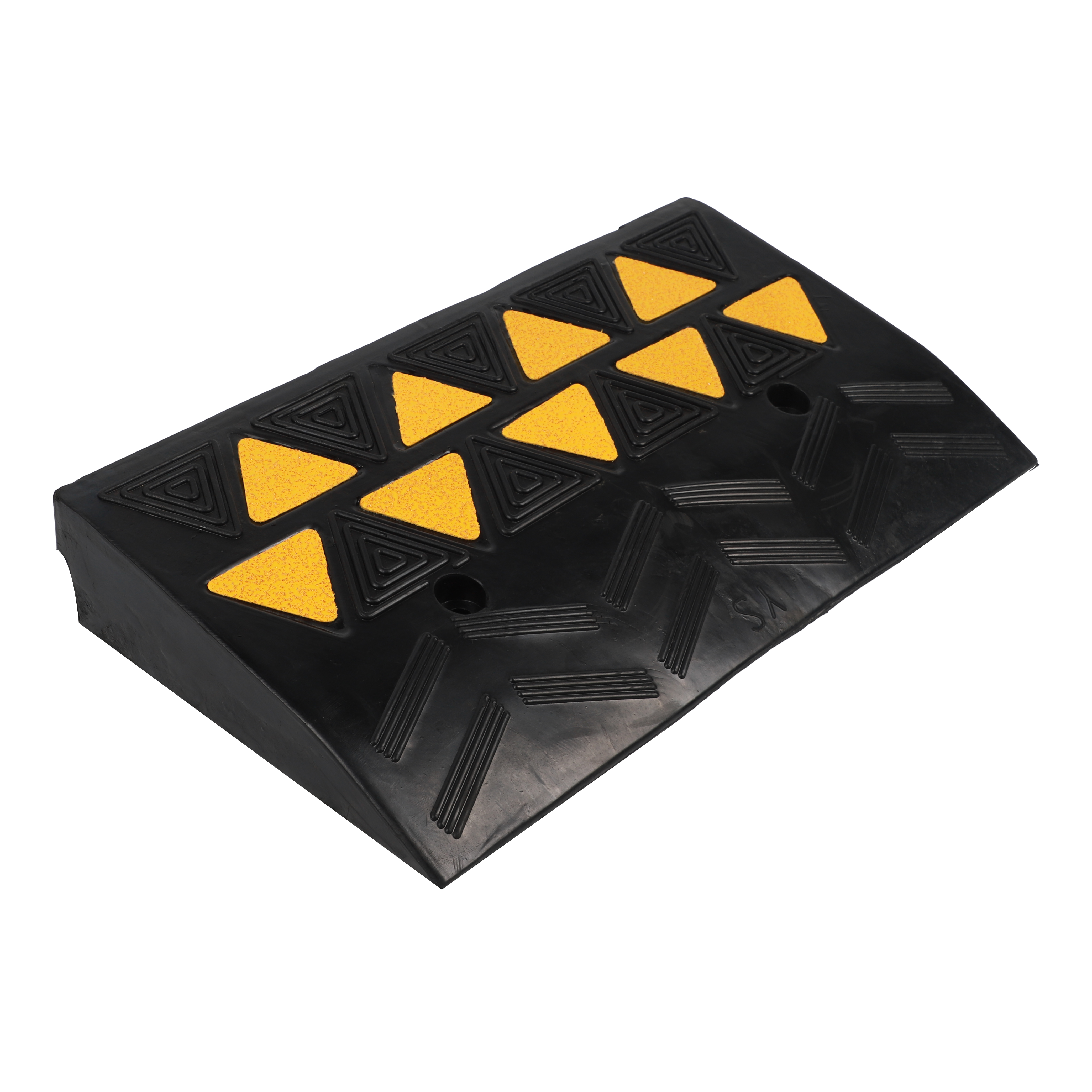 2. Produktabmessungen und Stabilität Rampengröße: 500 × 265 × 80 mm mit einem soliden Gewicht von 6,4 kg die robuste Gummikonstruktion bietet eine stabile Basis, die einer Verschiebung unter Last widersteht. Sie verfügt über zwei integrierte, vorgebohrte Befestigungslöcher, die eine dauerhafte Montage auf Asphalt- oder Betonflächen in stark frequentierten gewerblichen Bereichen ermöglichen.