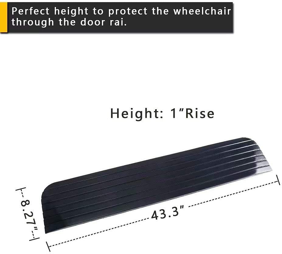 Grâce à ses dimensions optimisées (1100 mm de longueur x 210 mm de largeur x 25 mm de hauteur / 43,3 po x 8,3 po x 1 po), cette rampe est spécialement conçue pour franchir les hauteurs de seuil courantes de 2,5 à 5 cm. La largeur généreuse assure un passage sûr et stable, réduisant efficacement les risques de basculement pour divers types de roues.