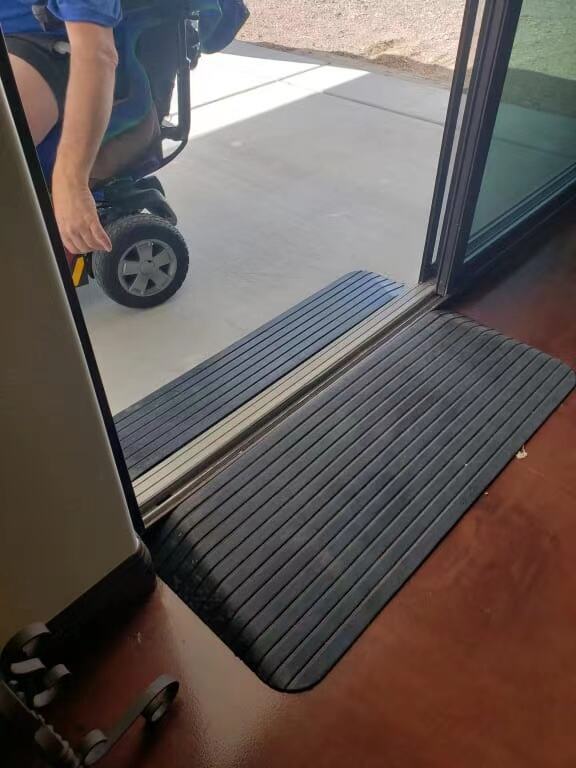 Idéale pour créer une transition fluide au-dessus des seuils de porte, des marches et des rebords surélevés. Elle facilite un accès facile et en douceur pour les fauteuils roulants, scooters de mobilité, chariots, poussettes et bagages. Une solution d'accessibilité parfaite pour les maisons, magasins, bureaux et entrepôts.