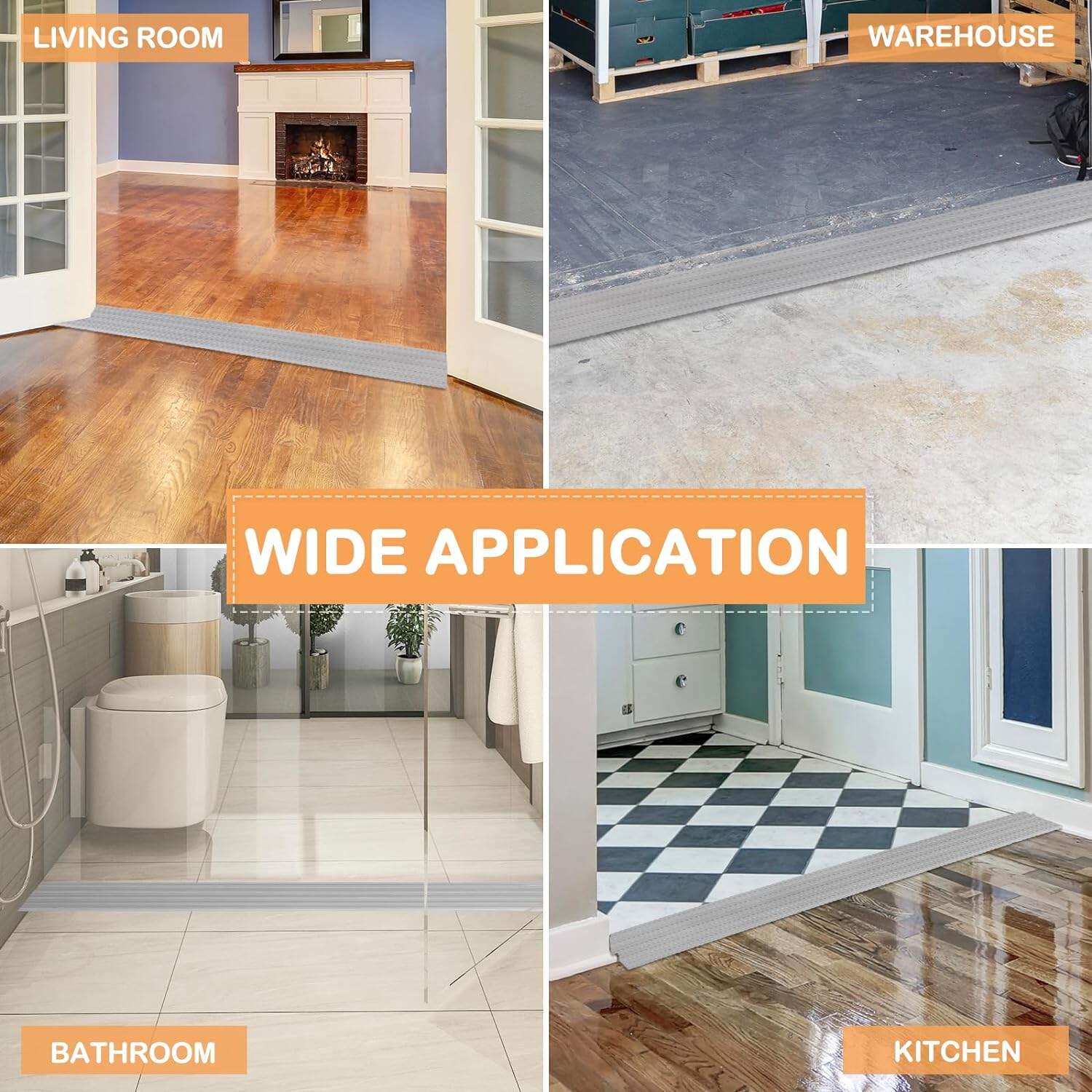 Protection des bords du revêtement de sol : Protège les bords des carreaux, des stratifiés ou des moquettes contre l’écaillage et l’usure causés par le passage d’équipements roulants.