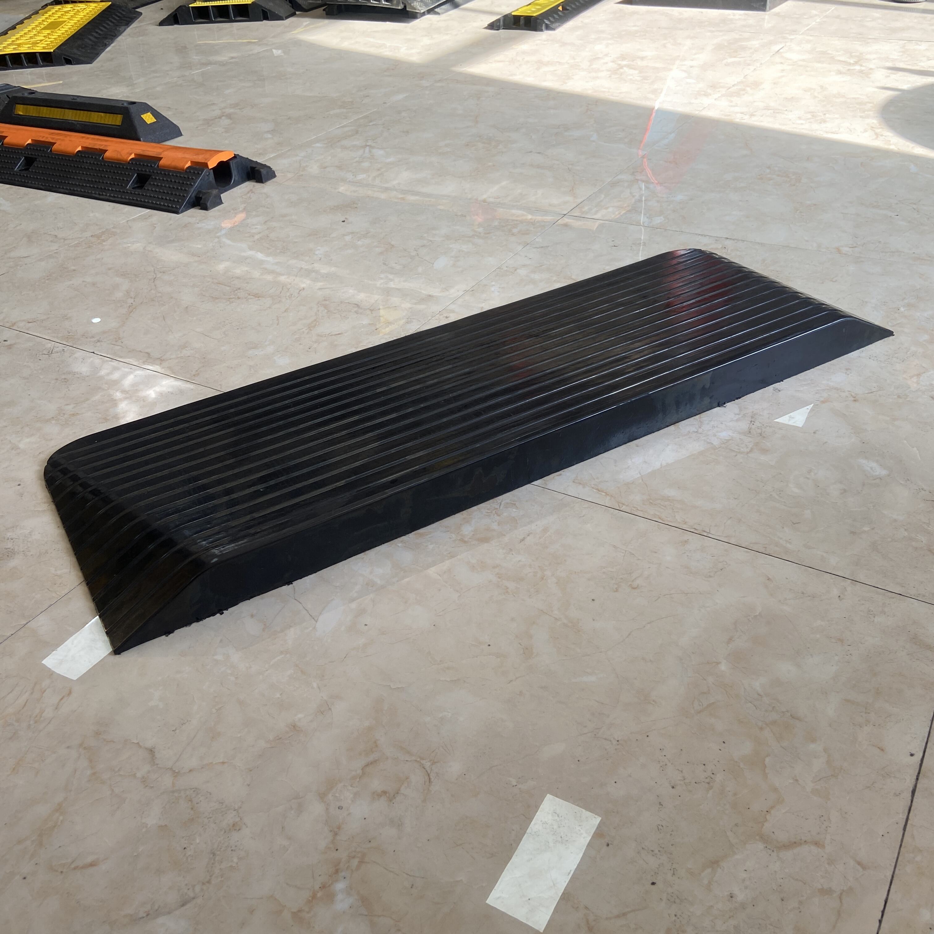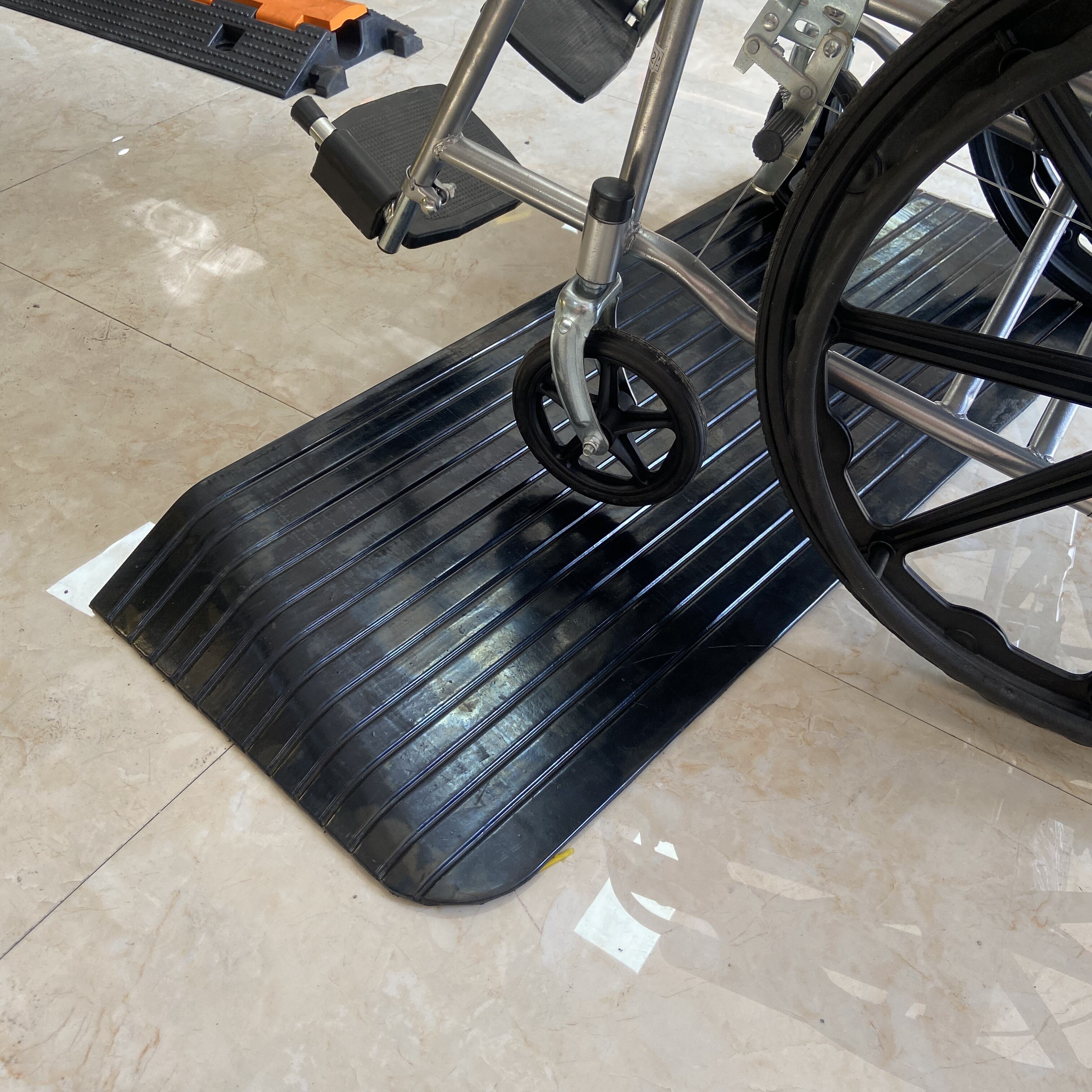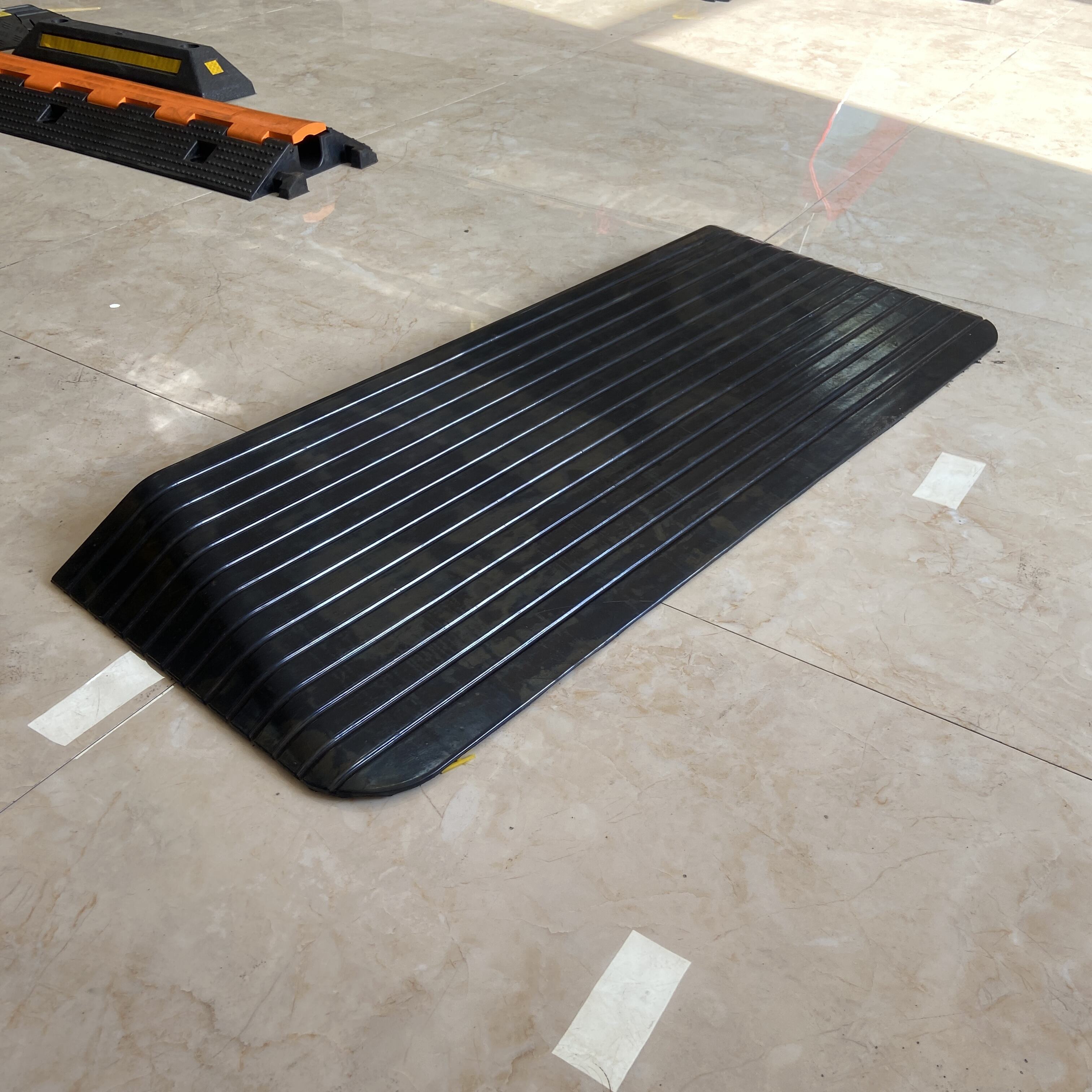 Solution d'accessibilité à biseau sur trois côtés : Dotée d'un design unique à biseau sur trois côtés permettant un accès fluide dans plusieurs directions. Cette rampe constitue la solution optimale pour fauteuils roulants, chariots industriels, fauteuils roulants électriques et machines légères . Elle convient parfaitement aux entreposages, quais de chargement, immeubles de bureaux commerciaux et hôpitaux , éliminant efficacement les risques de trébuchement.