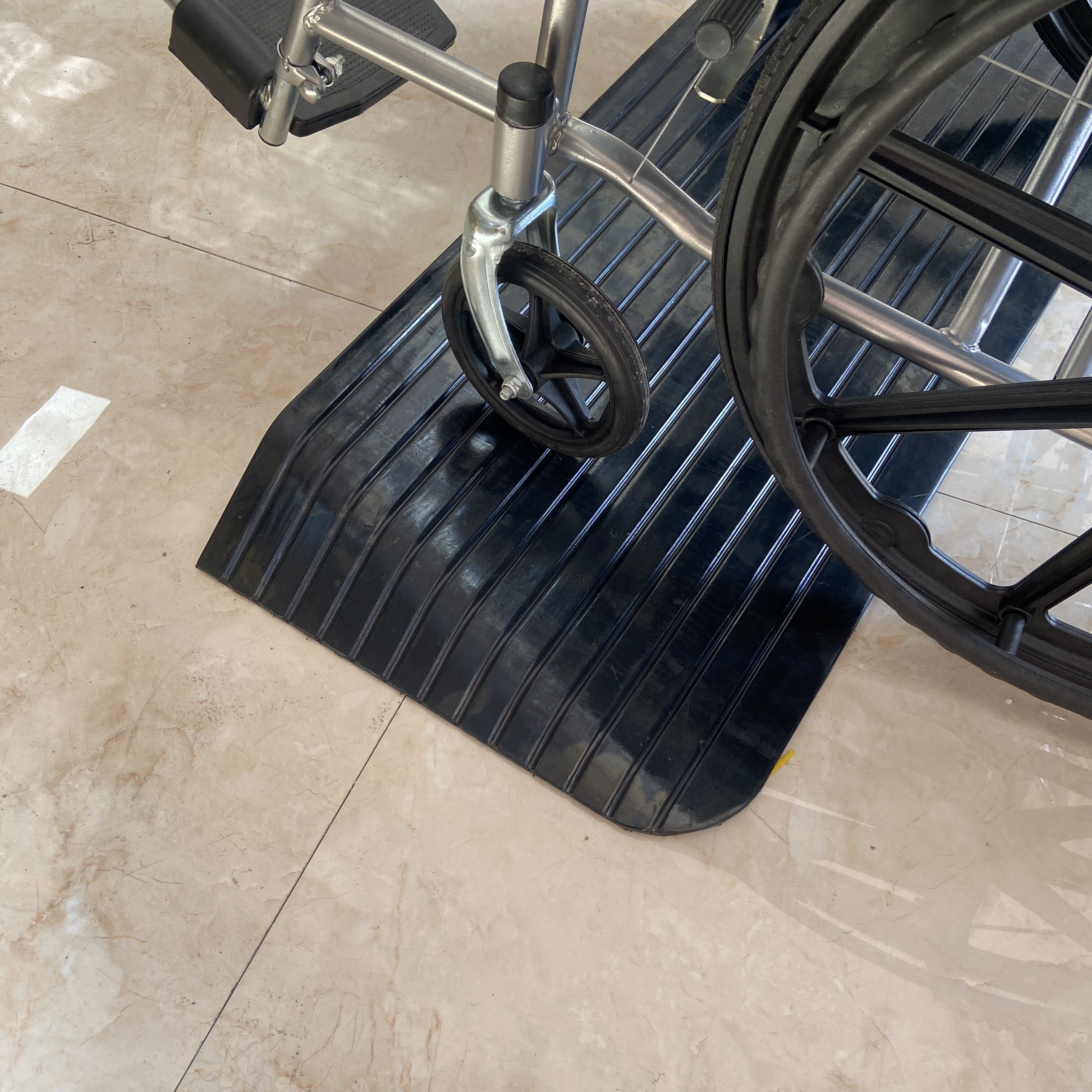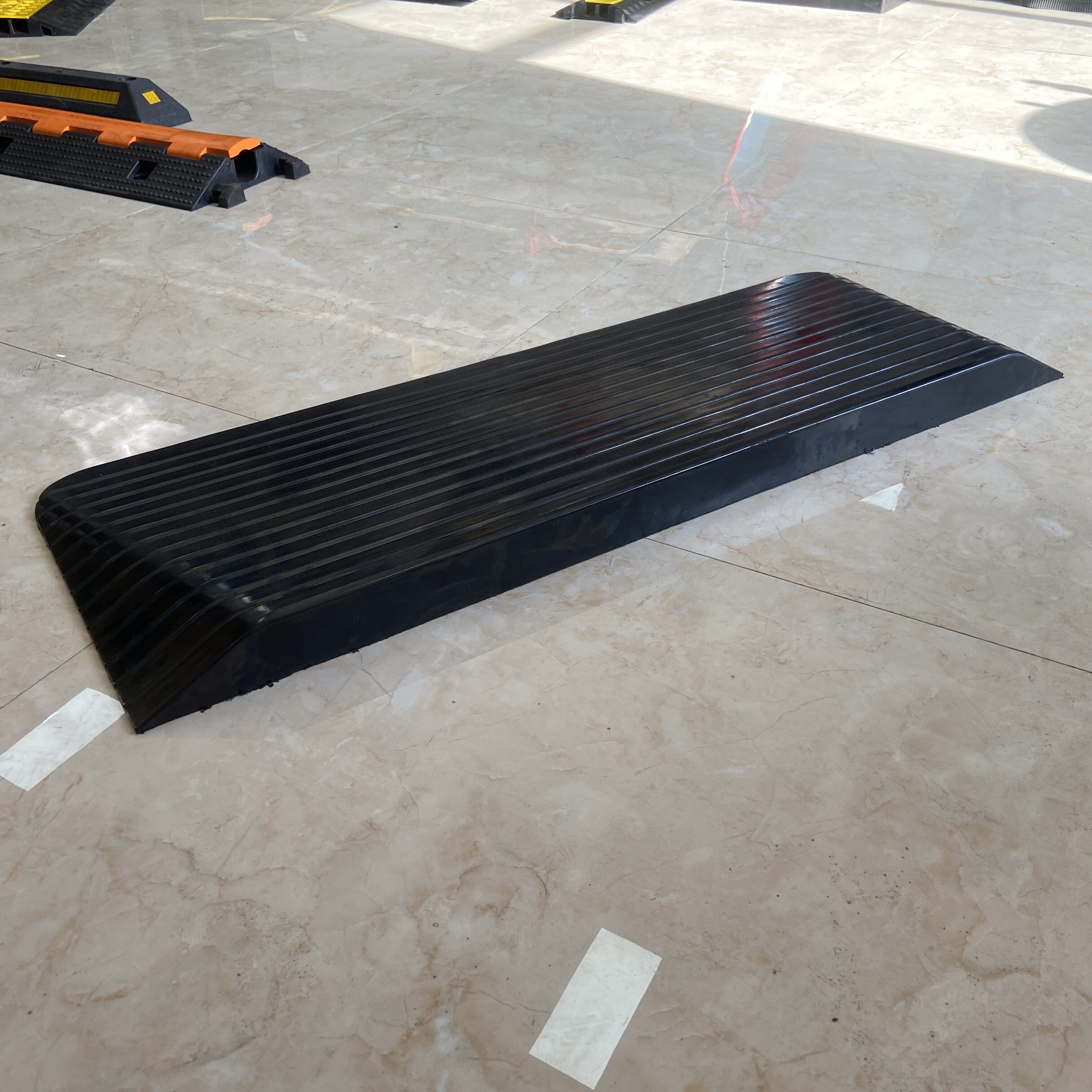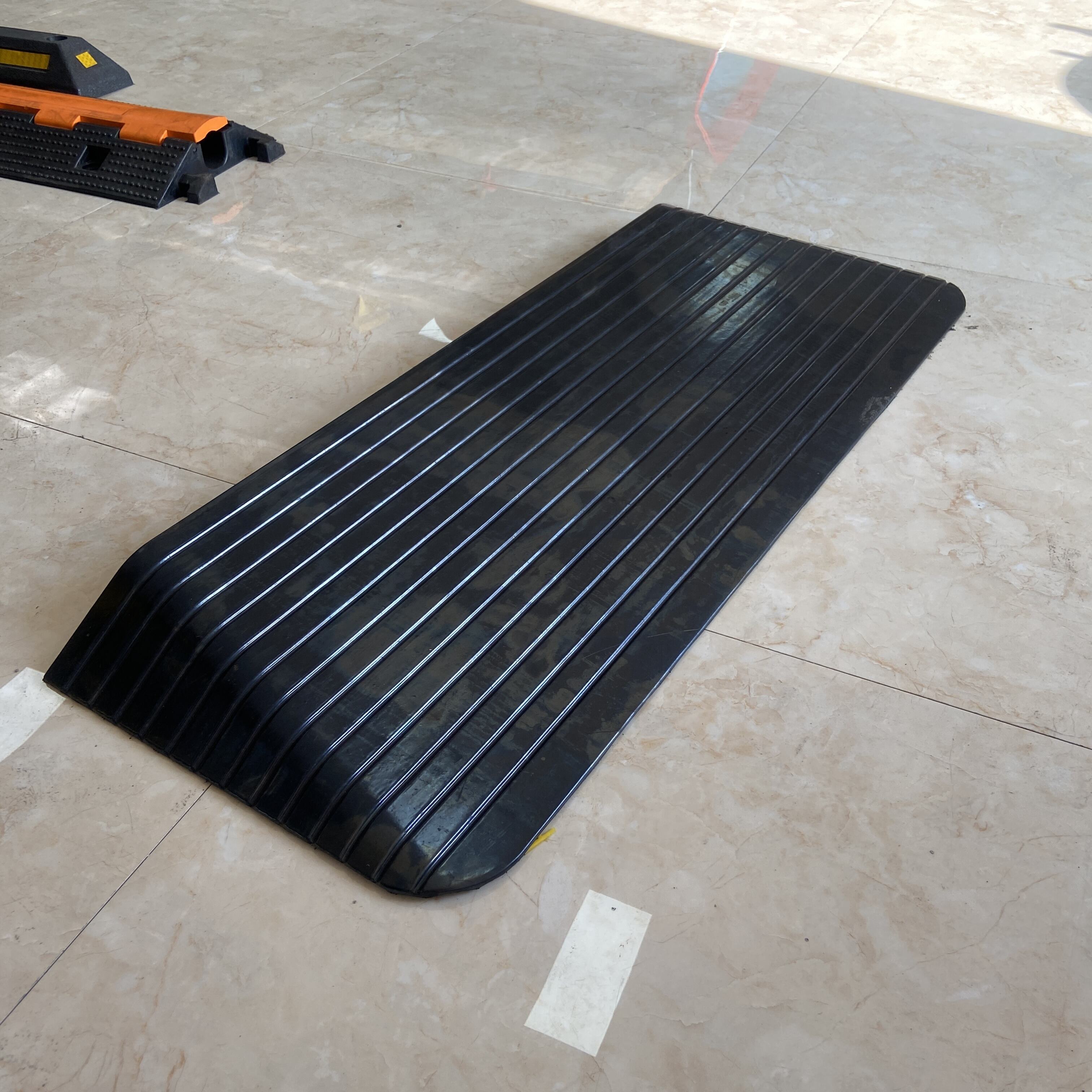 Solution d'accessibilité à biseau sur trois côtés : Dotée d'un design unique à biseau sur trois côtés permettant un accès fluide dans plusieurs directions. Cette rampe constitue la solution optimale pour fauteuils roulants, chariots industriels, fauteuils roulants électriques et machines légères . Elle convient parfaitement aux entreposages, quais de chargement, immeubles de bureaux commerciaux et hôpitaux , éliminant efficacement les risques de trébuchement.