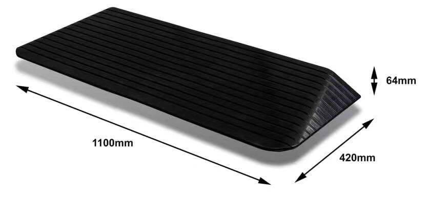 Spécifications hautes performances et stabilité : Conçu avec précision selon des dimensions professionnelles de 1100 mm (longueur) × 420 mm (largeur) × 64 mm (hauteur) et un poids substantiel de 14,7 kg . Son poids propre important, combiné à un profil de 64 mm, garantit que la rampe reste solidement en place sous le poids d'équipements lourds, offrant ainsi un pont fiable et stable pour les seuils de porte et les bordures.