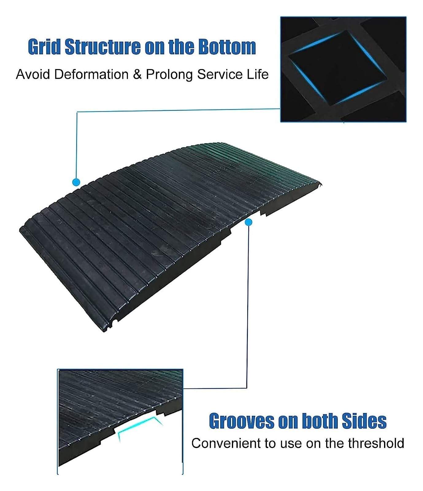 Premie-material og kompresjonsformning: Fremstilt av høytetthets, industrielt kvalitets Gummi ved hjelp av en vulkaniseringsprosess under høyt trykk og kompresjonsformning. Dette sikrer at rampe er eksepsjonelt holdbar, værbestandig og i stand til å tåle kraftig kjøretøybelastning uten å sprekke eller deformere ved langvarig utendørs bruk.