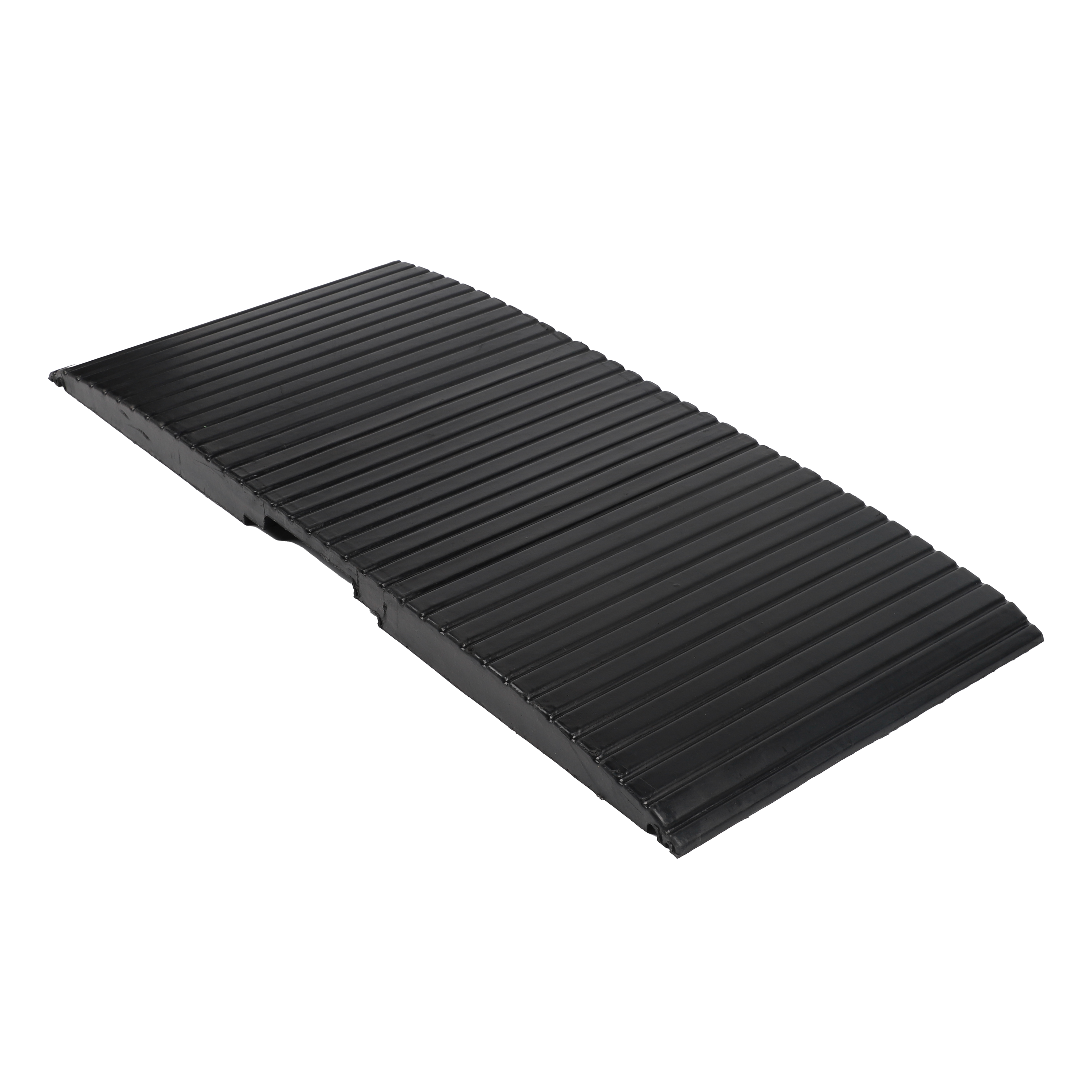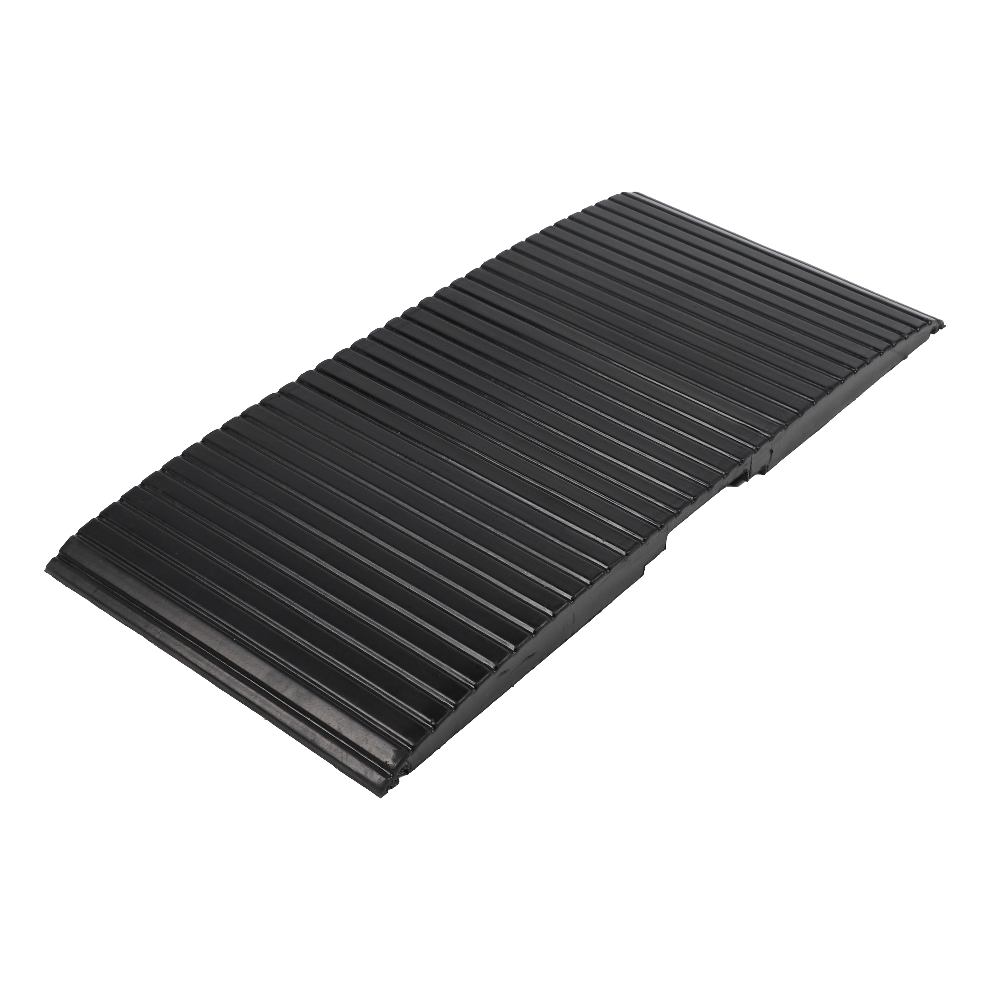 Slank profil og tekniske spesifikasjoner: Denne rampe har en lavhøydeutforming med mål på 820 x 380 x 38 mm og en vekt på 6,2 kg . Høyden på 38 mm (1,5 tommer) er spesielt utformet for å overvinne små terskler og lave kantsteinar, og sikrer en sømløs overgang uten den store volumen til tradisjonelle tunge ramper.