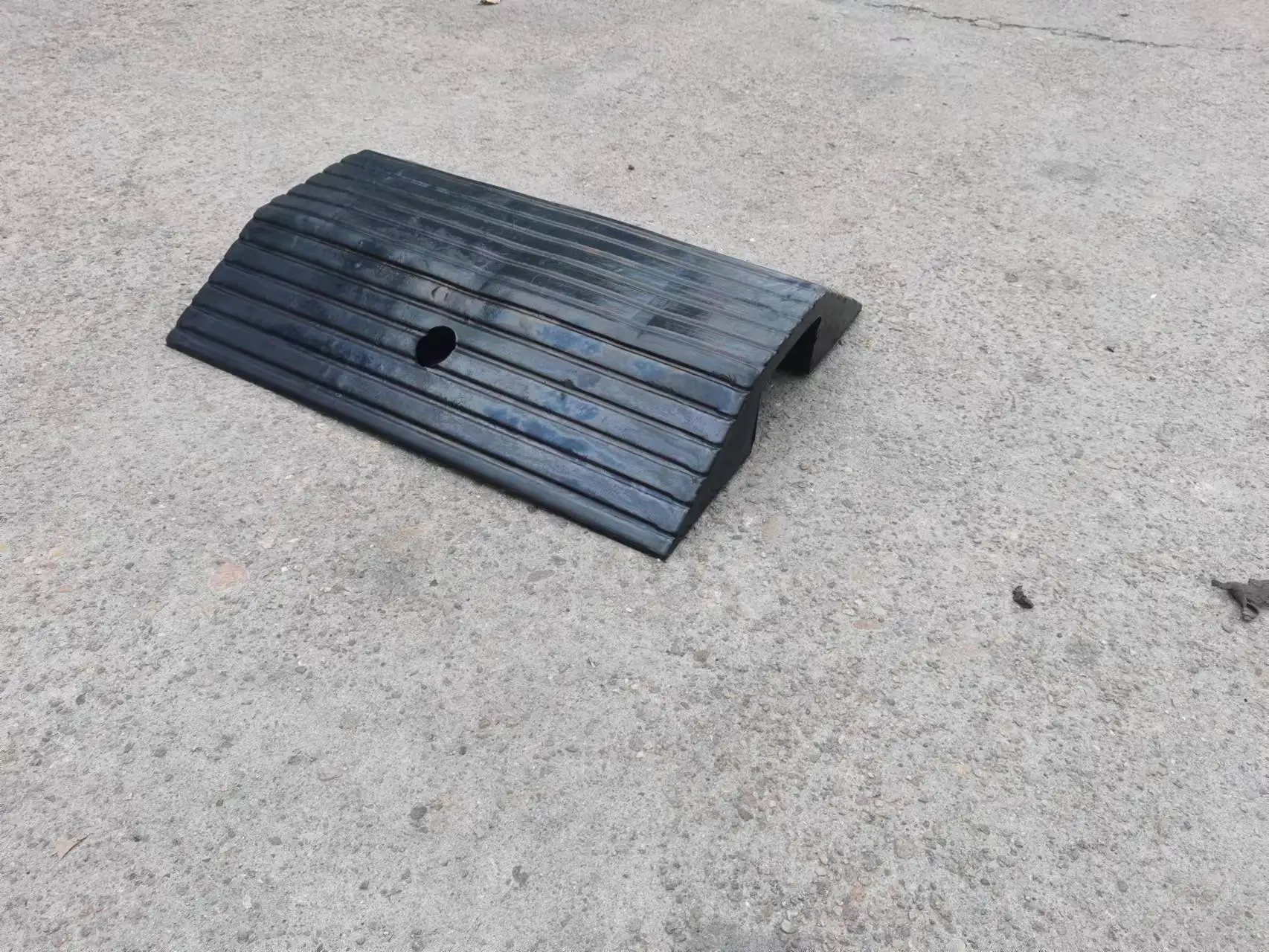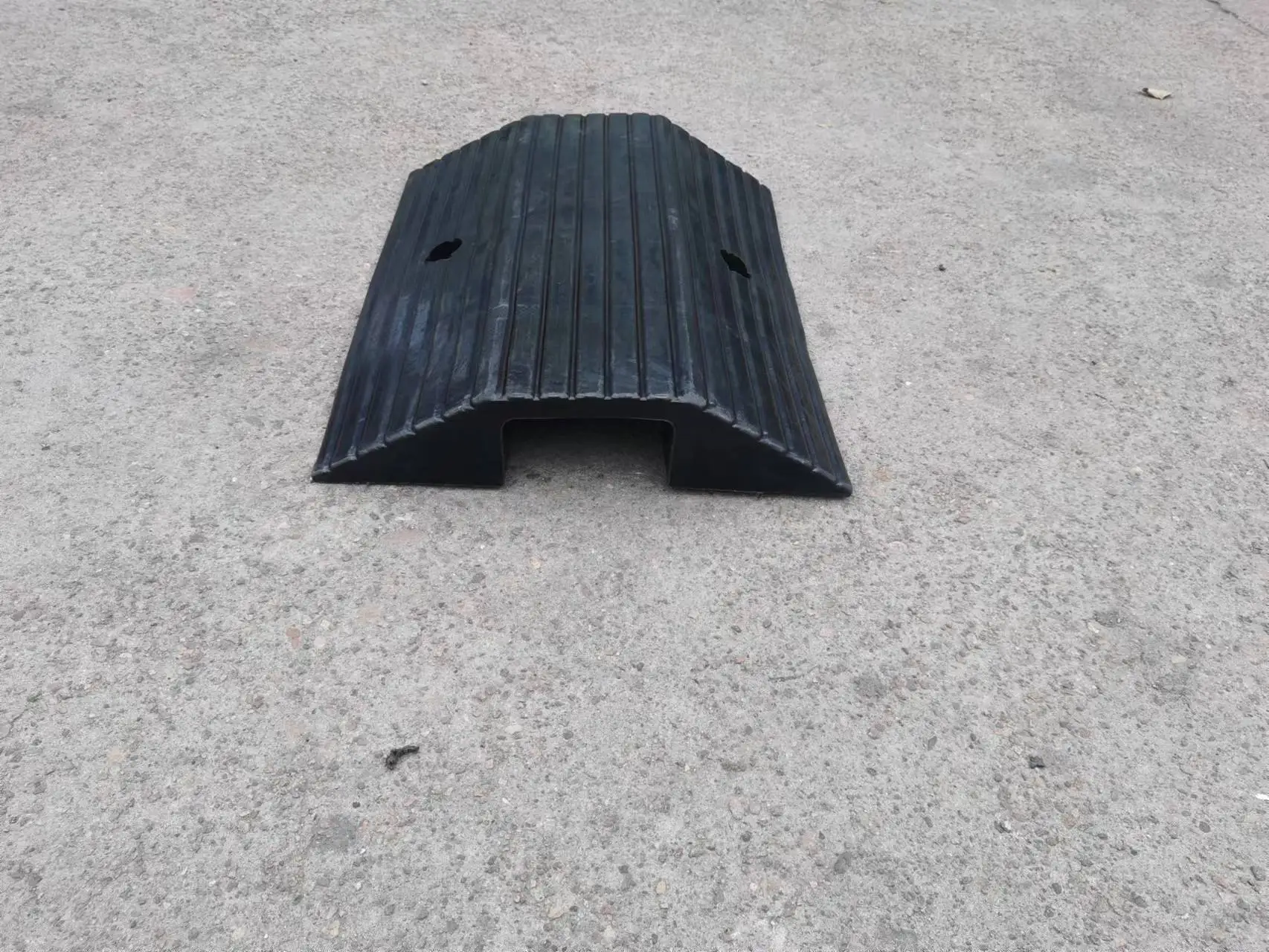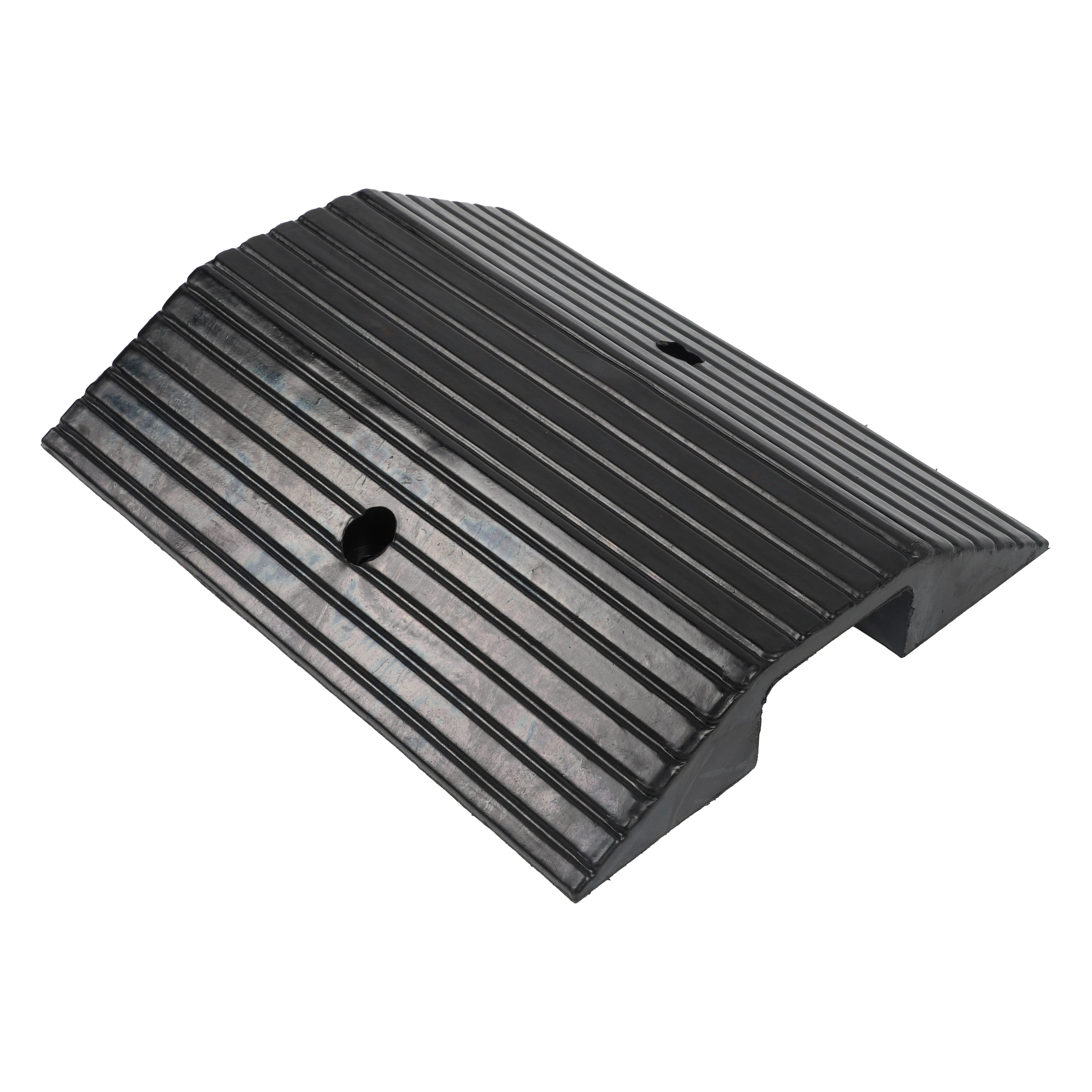 Egenskaper: 1. Holdbar enfelts fast gummiterskel rampe som ikke sklir i verken innendørs eller utendørs forhold. 2. Slitelast friksjonsgjort gummiplate med støpte dreneringskanaler for bedre grep. 3. Skråkantede sider gir en jevn overgang fra alle sider. 4. Passer de fleste tersler og er enkel å modifisere ved behov. 5. Ingen montering nødvendig